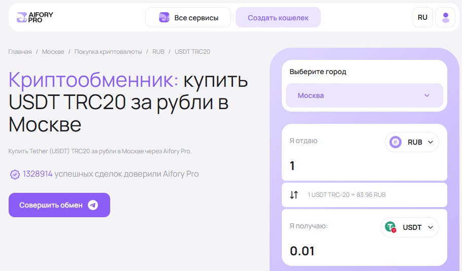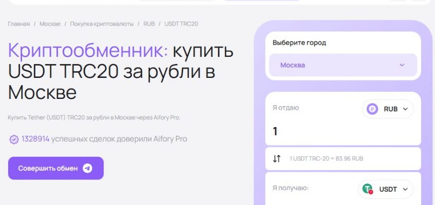 Если вы ищете способ обменять USDT (Tether) на наличные рубли в Москве, криптообменник Aifory Pro предлагает удобное и безопасное решение. В этой статье мы расскажем, как быстро и выгодно продать USDT за наличные, какие условия предлагает сервис и ответим на самые частые вопросы.